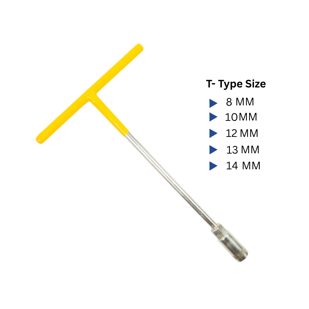 The T-shaped handle design provides excellent leverage and balanced torque. It allows users to apply force evenly, which reduces effort and improves fastening efficiency. Therefore, tightening and loosening nuts becomes faster and more comfortable compared to standard spanners.